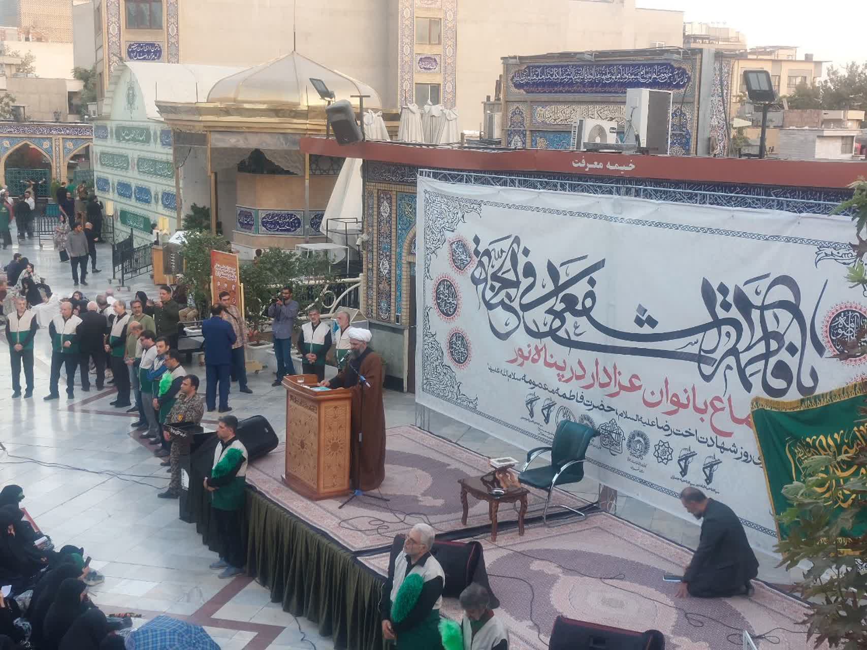 این مراسم با راهپیمایی نمادین خادمیاران رضوی از میدان قدس تا میدان تجریش آغاز شد؛ اقدامی که به یاد شهدای جنگ دوازده روزه و گرامیداشت مقام شهدایی که در میدان قدس تهران به دست عوامل رژیم صهیونیستی به شهادت رسیدند، صورت گرفت. شرکتکنندگان پس از ورود به صحن امامزاده، با قرائت فاتحه و زیارت قبور شهدای دانشمند هستهای و دیگر شهدا، ضمن ابراز ارادت، یاد و خاطره آنان را گرامی داشتند.
